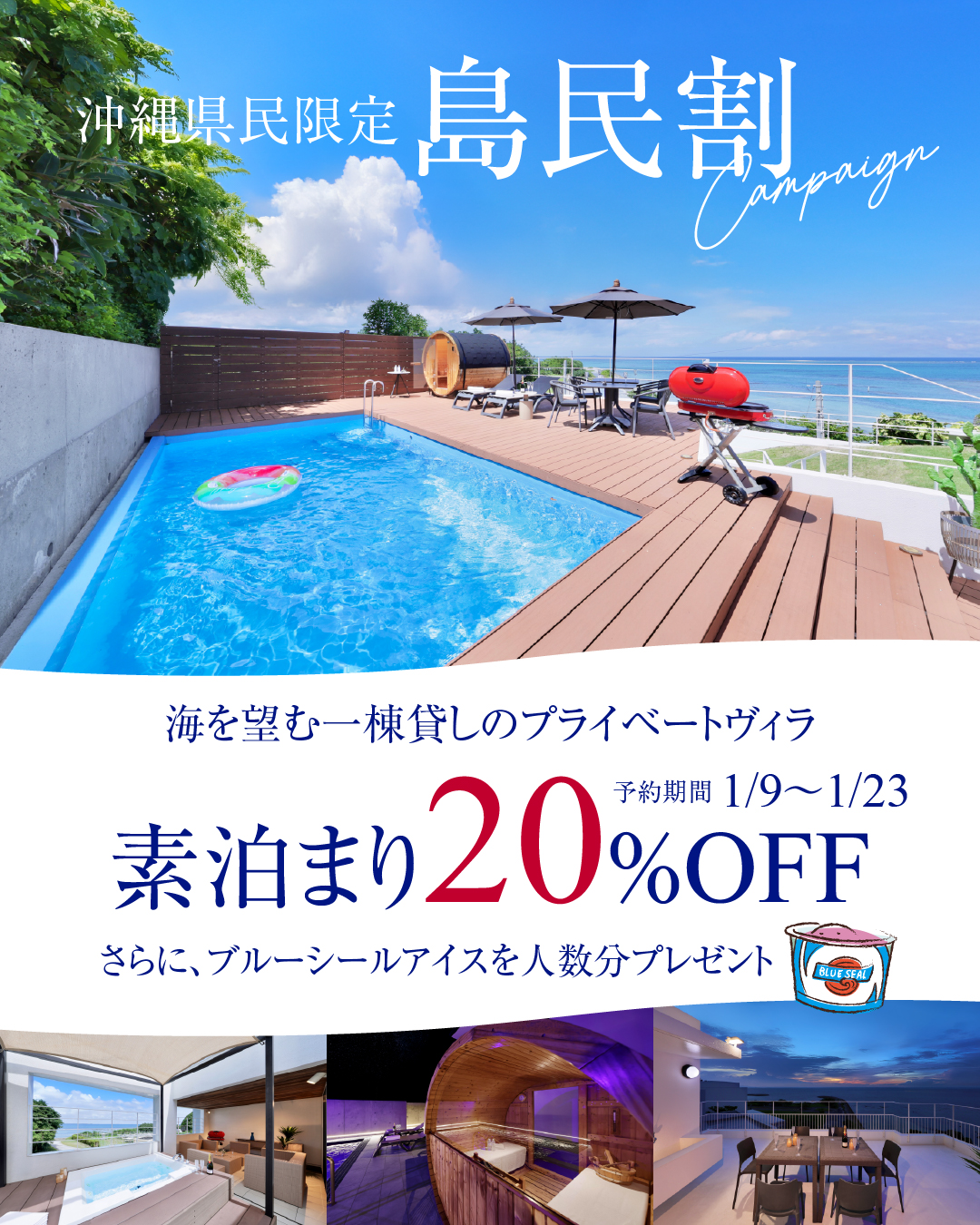 大人数でもお過ごしいたただけるヴィラなど、