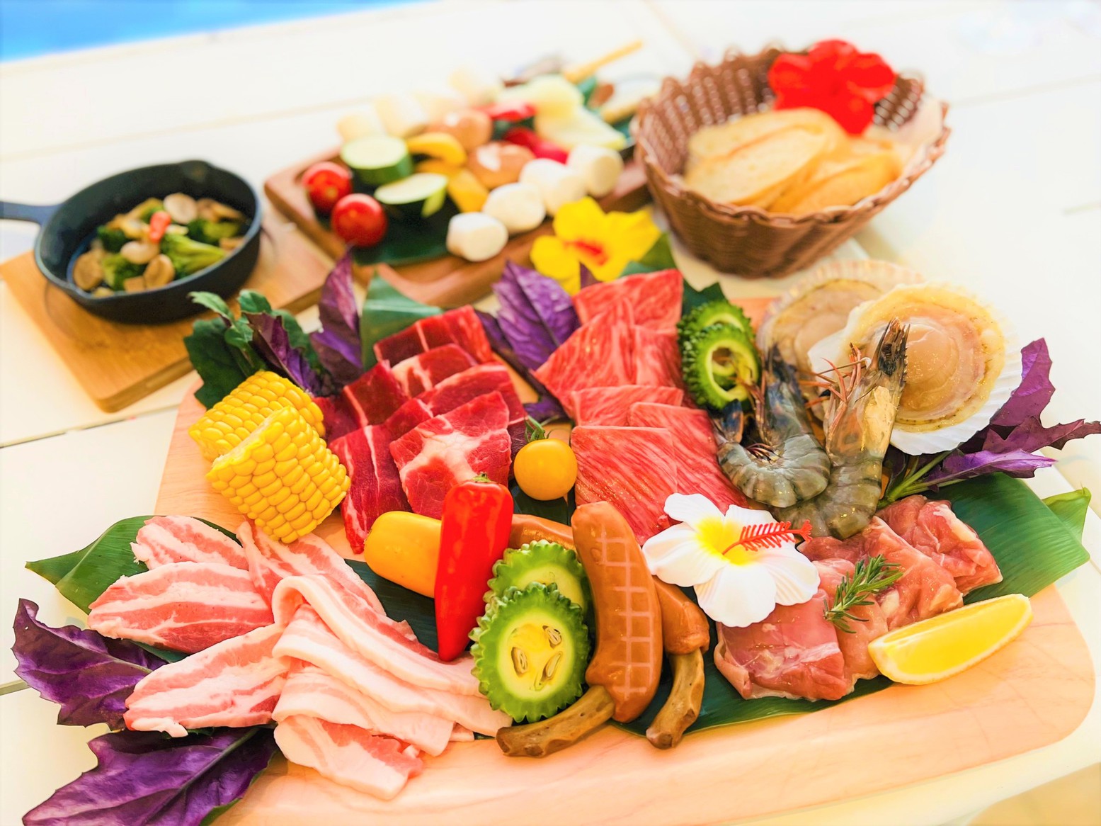 テラスで新鮮な海の幸やお肉を楽しめるバーベキューと弊社運営のしゃぶしゃぶ店からのケータリングサービスをご用意しております。