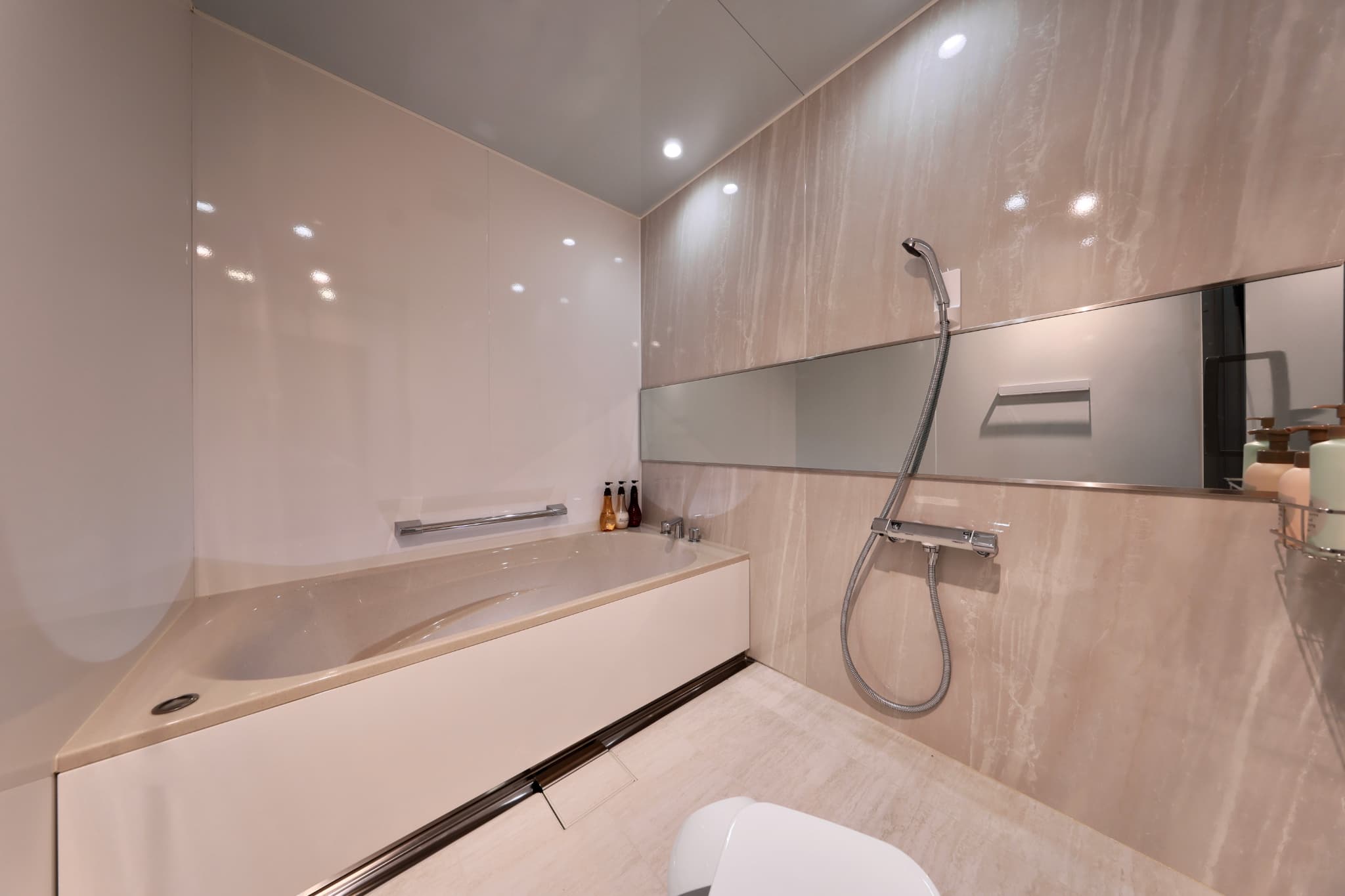広々バスルームと充実のパウダールーム。
