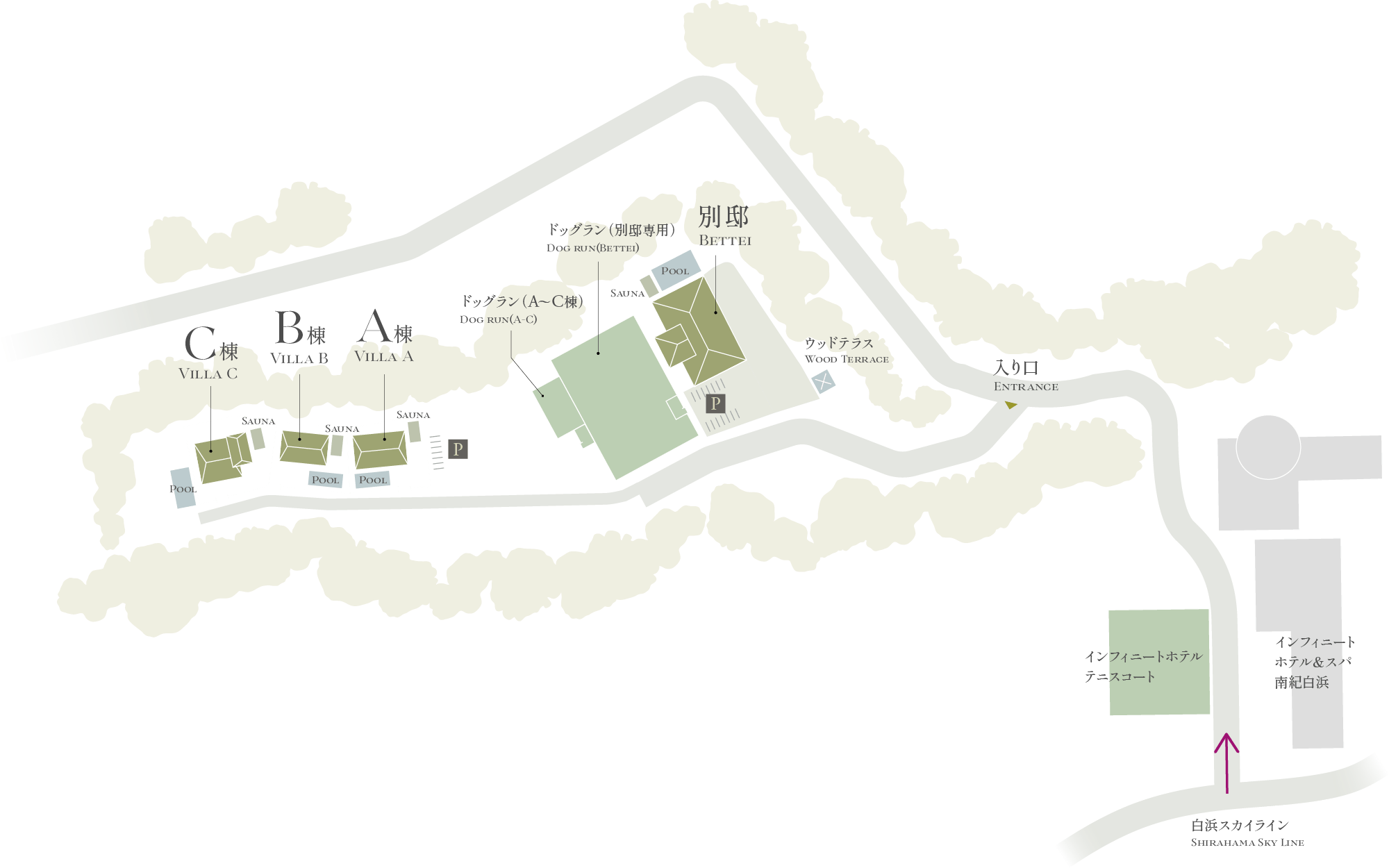 ヴィラへのアクセス